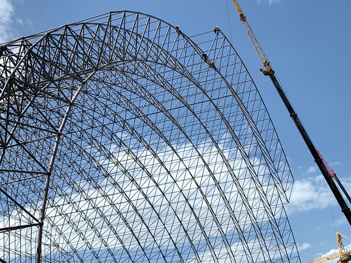 (2)网架加工前应对现场尺寸进行复测,确认无误后方可进行加工、安装;网架制作、运输、安装应遵守《空间网格结构技术规程》JGJ7-2010、《钢网架梅河口螺栓球节点》JG/T 10-2009、《钢网架梅河口螺栓球节点用高强度螺栓》 GB/T 16939-2016、《梅河口钢结构梅河口工程梅河口施工规范》 GB50755-2012、《梅河口钢结构梅河口工程梅河口施工质量验收标准》 GB50205-2020。